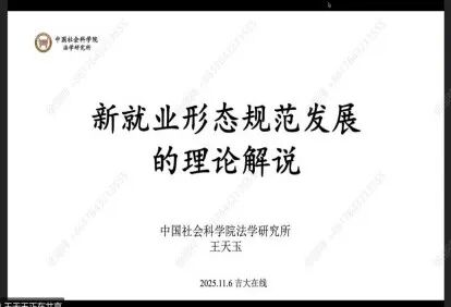 11月6日下午,劳动关系研究院举办名家讲座。劳动关系研究院副院长邵彦敏主持讲座。中国社会科学院法学研究所研究员王天玉以“新就业形态规范发展的理论解说”为题为广大师生作专题讲座。